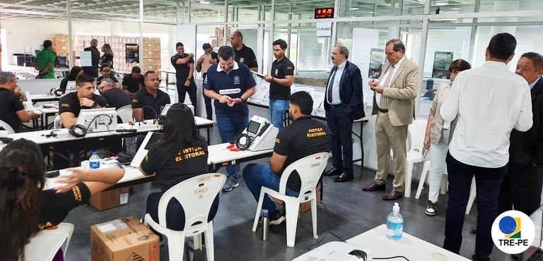 O vice-presidente e corregedor do TRE Pernambuco, desembargador Humberto Vasconcelos Júnior, acompanhou nesta sexta (27) a preparação das urnas no polo Petrolina, junto do juiz auxiliar da Corregedoria, Paulo Victor Vasconcelos de Almeida, e do diretor-geral do TRE, Orson Lemos.